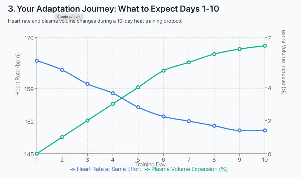 Your heart and blood vessels also become more efficient. Research shows that after adapting to heat, athletes have lower heart rates for the same effort, their hearts pump more blood, and their bodies manage temperature better, even in cooler conditions. Your body learns to work more efficiently.